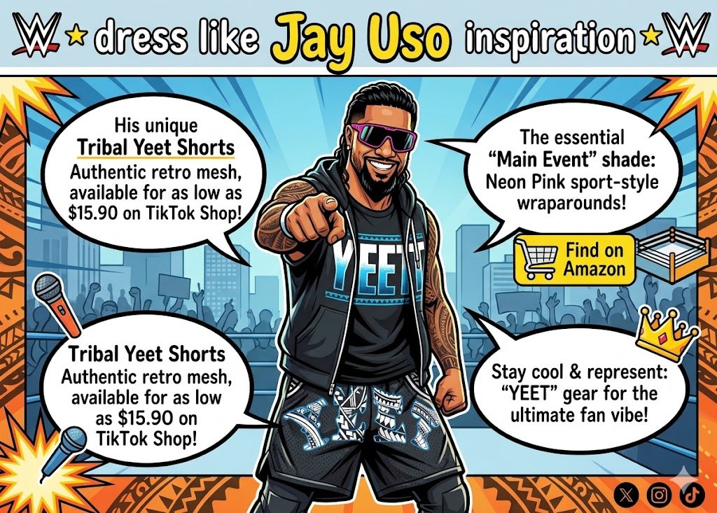 Jey Uso is the hottest thing in WWE right now, and his “YEET” aesthetic is taking over streetwear. Whether you’re heading to a live show or just want that “Main Event” energy, here is exactly how to pull off the look.