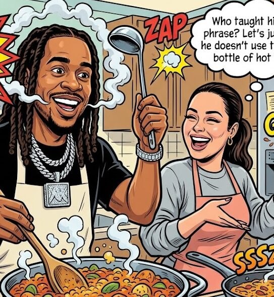 The love in the kitchen is palpable. His wife’s smile as she takes that first bite says it all: the “Wavy One” knows his way around a stove just as well as he knows a recording booth.